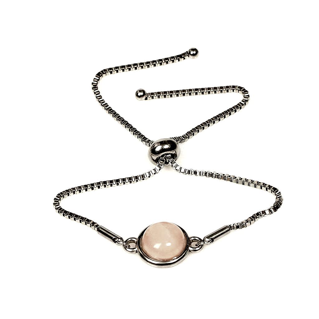 Açık Renkli Pembe Kuvars Taşı Çelik Bileklik – Gümüş Renkli, kalpten gelen bir zarafeti temsil eder.
