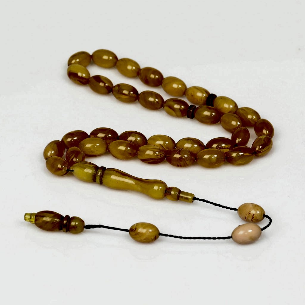 Yumuşak ve iç ısıtan rengiyle öne çıkan Hareli Sarı Sıkma Kehribar Tesbih, nostaljik bir estetik taşır. Işığı yumuşak biçimde yansıtan yüzeyi, elde dingin bir temas hissi bırakır.