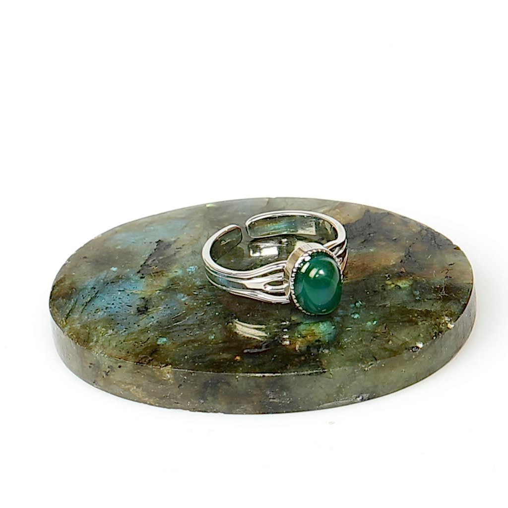 Yeşil Akik Taşı Çelik Yüzük, yetişkin kadın ve erkekler için uygundur ve el işçiliği ile üretilmiş özel bir parçadır.